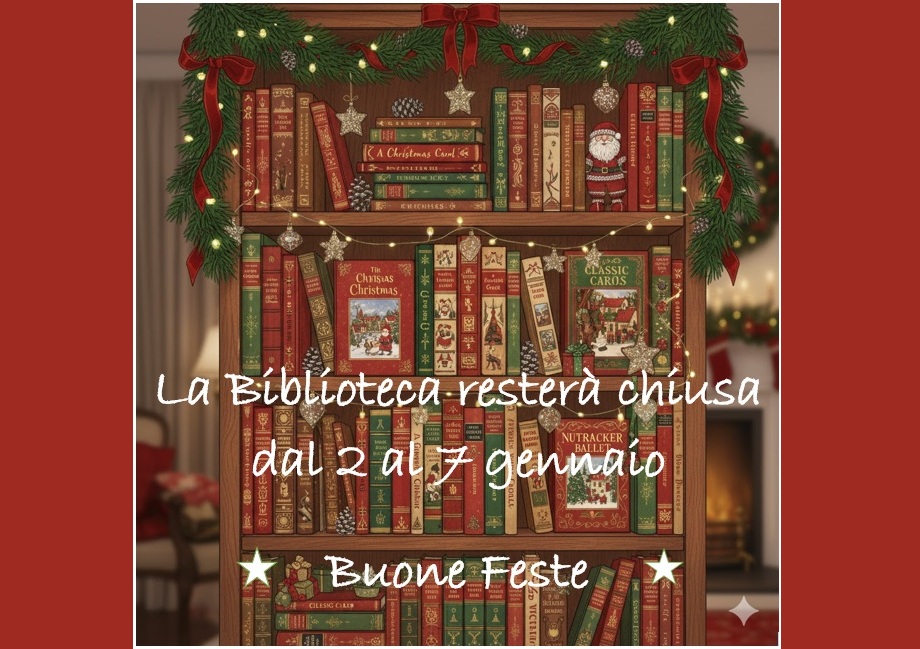 Si informa la gentile utenza che la Biblioteca rimarrà chiusa dal 2 al 7 gennaio