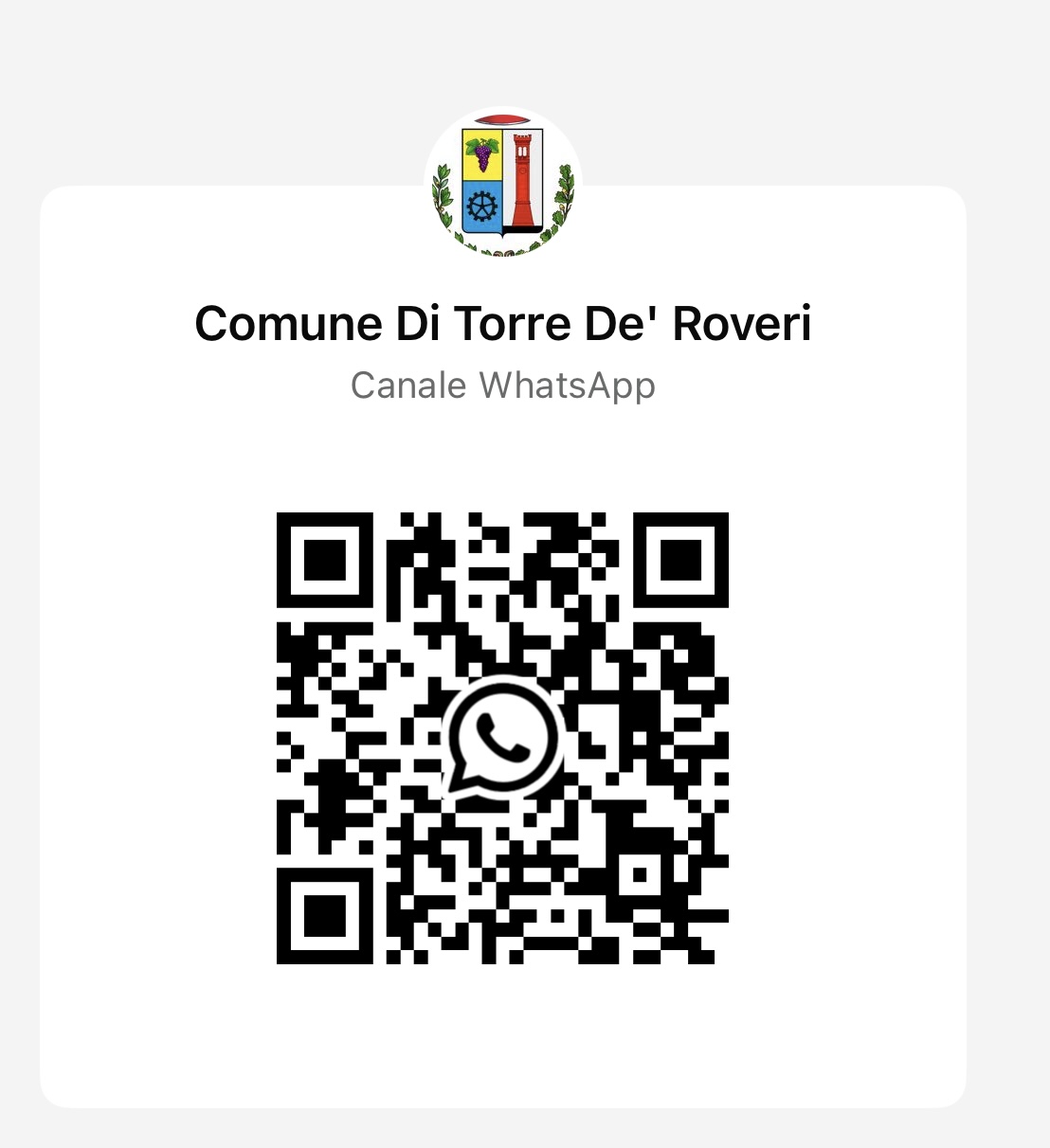 É attivo il nuovo canale Whatsapp istituzionale del Comune di Torre de' Roveri. Troverete tutte le informazioni riguardanti le attività svolte dall'Amministrazione Comunale, per rimanere aggiornati su tutte le novità e gli eventi.