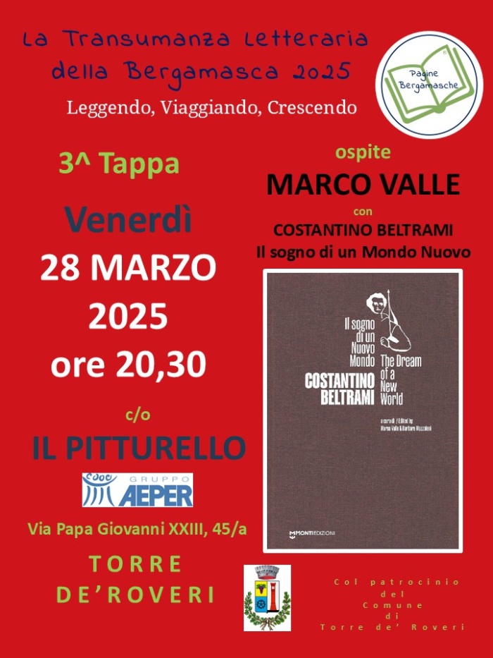 A Torre de' Roveri, presso il Pitturello siamo lieti di ospitare il Direttore del Museo delle Scienze di Bergamo per rievocare la figura del primo esploratore bergamasco della storia: Costantino Beltrami.